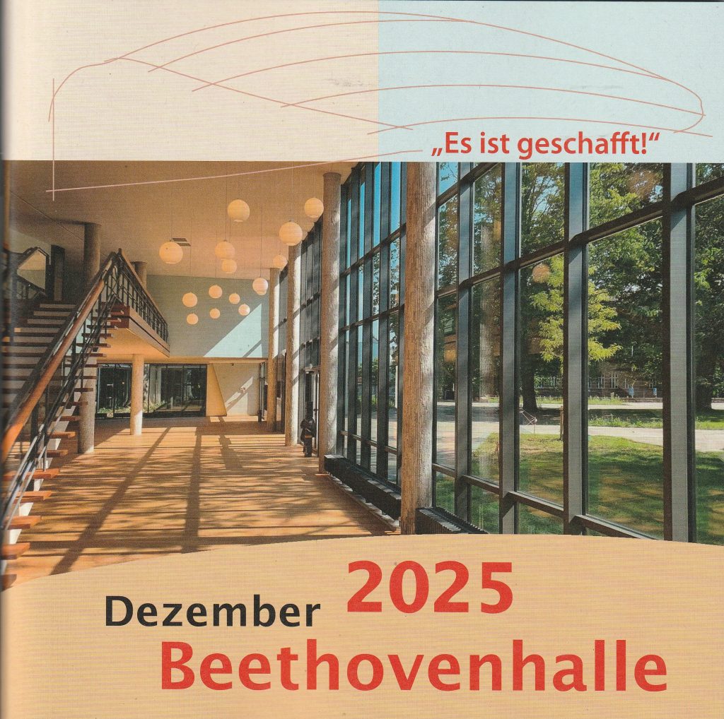 „Es ist geschafft!“ heißt die neue Broschüre, die unser Verein zur Eröffnung der Beethovenhalle herausgegeben hat. Es handelt sich um eine 36seitige Fotodokumentation, in der der Verein auf seine Aktivitäten zur Rettung der Beethovenhalle zurückblickt.